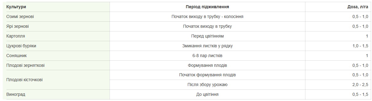 Препарат є ефективним при фертигації рослин на крапельному поливі. Концентрація препарату при фертигації: 100 мл на 1 м. куб. води.