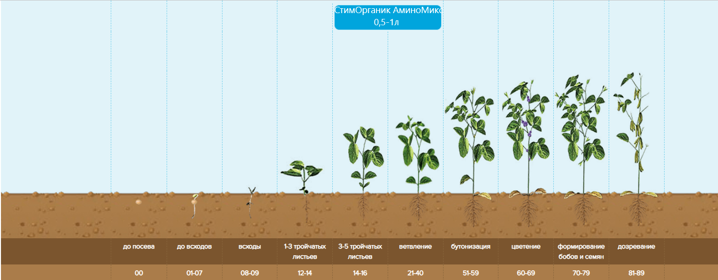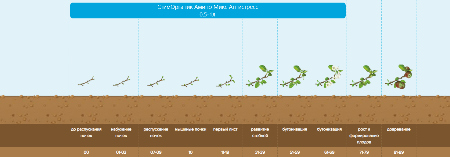 Нормы препарата для всех культур – 0,5-1 л/га с начального периода вегетации до цветения в баковых смесях для некорневых обработок.