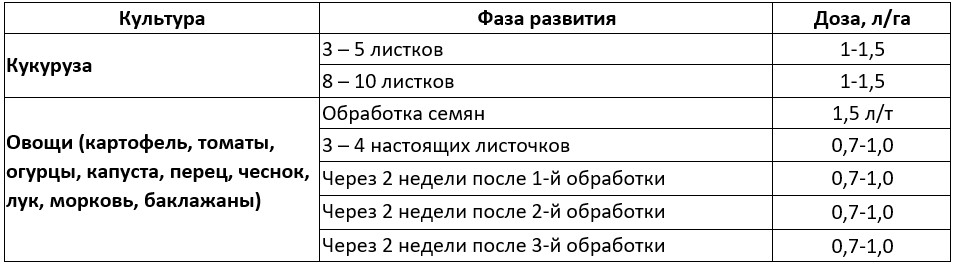 Обеспечивает макро- и микропитание в критические фазы развития растений (заделка урожая, цветение, налив зерна). Используется для внекорневой подкормки кукурузы, овощей, что способствует повышению урожайности и качественным показателям урожая.