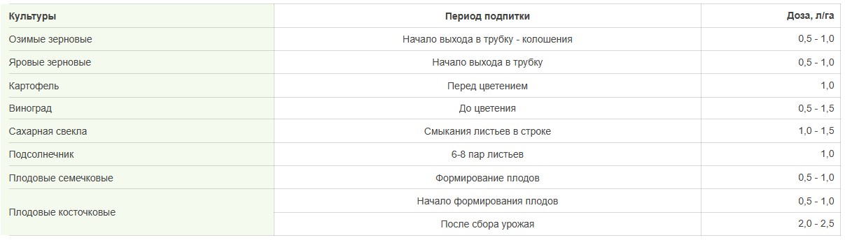 Дозы и периоды подкормки культур: