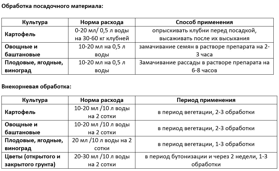 При обработке молодых верхних листьев овощных культур перед началом цветения плодово-ягодных культур концентрация рабочего раствора должна быть примерно 0,25-0,3% (объемных).